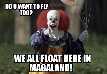 16m members in the meme community. We see that the phrase We all float down here several times throughout the novel coming either from Pennywise or from the dead kids. Down here we all float.